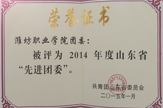 在近日召开的共青团山东省十三届三次全委(扩大)会议和共青团潍坊市十八届四次全委会议上,我院团委分别受到省市表彰,获得2014年度“山东省先进团委”、“潍坊市红旗团委”荣誉称号。更多 -