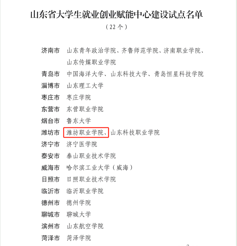 5月6日,《山东省人力资源和社会保障厅、山东省教育厅、山东省财政厅关于公布山东省大学生就业创业赋能中心建设试点名单的通知》正式发布,首批试点名单共有来自全省16地市22所高等院校,我院入选山东省大学生就业创业赋能中心建设试点,这是开云online(中国)就业创业工作的又一省级标志性成果。 山东省大学生就业创业赋能中心旨在推动构建“覆盖高校、贯穿全程、精准高效”的大学生就业服务新格局,提升新时代大学生就业服务水平,实现就业工作质量和学生就业能力双提升、...更多