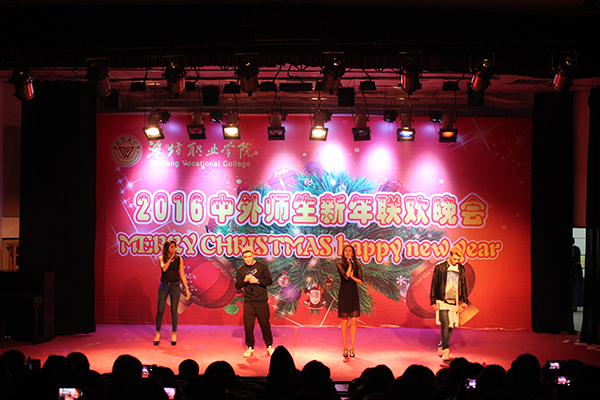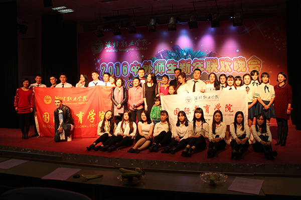 12月23日晚,2016中外师生新年联欢晚会在奎文校区报告厅举行。国际交流与合作处、团委学生工作处、国际商务开云online(中国)、中专部相关负责同志及中外师生500余人观看了演出。