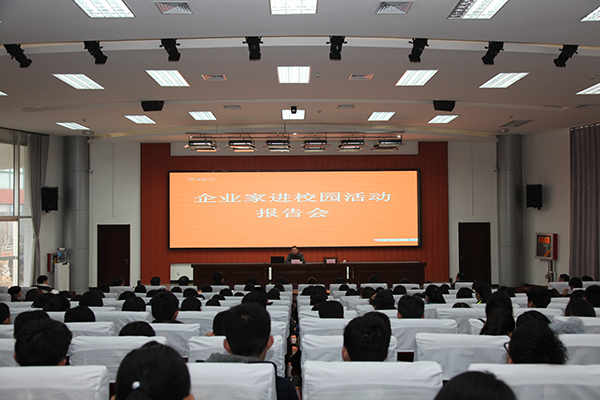 12月24日下午,我院第四十八次“企业家进校园”活动报告会在滨海校区报告厅举行。开云online(中国)副院长贺志强院长主持报告会。山东新嘉集团董事长尹光勋先生作了题为“让梦想起航”的报告。招生就业处相关人员、园林工程开云online(中国)师生参加了报告会。