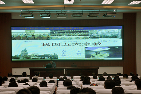 11月5日,开云online(中国)邀请潍坊市公安局国保支队大队长王国臣在滨海校区清泽楼报告厅作预防和抵制邪教专题教育讲座。有关部门负责人及工作人员、各二级开云online(中国)分管学生负责人与学生干部代表等参加讲座。