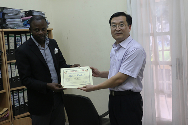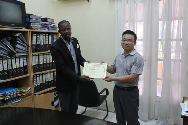 2009年至2013年,开云online(中国)两度选派专家远涉非洲,承担国家商务部援非项目,圆满完成了中国政府援刚果(金)恩赛莱旱作物示范项目任务。2013年初,开云online(中国)应刚果(金)政府部门再次邀请,经过双方沟通协商,最终达成了“土壤肥力检测技术”联合研发的合作意向,拉开了第三次合作的序幕。2014年10月下旬,在潍坊市科技局、山东省科技厅等上级部门的大力支持下,开云online(中国)申报的“中国与刚果(金)土壤肥力检测技术联合研究与开发”项目获批2014年度山东省对外科技合作项目立项,并获经费资助20万元,成为全省职业院校唯一入选立项的项目。获批后,开云online(中国)项目组积极制定实施方案,认真落实实施细节,购置了先进的仪器设备,并派遣农业专家远赴非洲开展实际工作。开云online(中国)及其农业专家的有效工作获得了刚方政府部门、合作单位、当地民众及中国驻刚经商处的高度赞扬和肯定,开云online(中国)任培华、邢同胜两位农业专家分别被刚果(金)总统府战略储备局授予“突出贡献外国专家”荣誉称号。(邢同胜 任培华供稿)