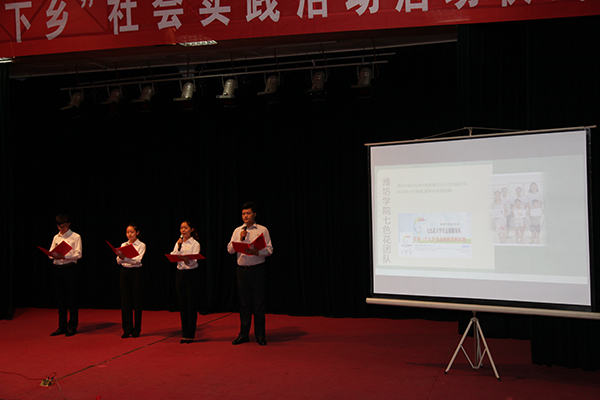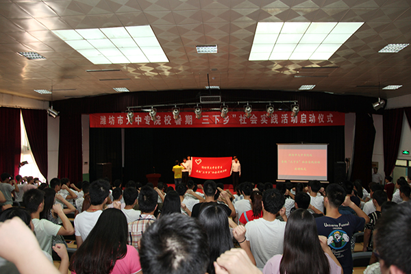 7月8日,2015年潍坊市大中专院校暑期“三下乡”社会实践活动启动仪式在我院奎文校区报告厅举行。潍坊团市委书记赵学坤、开云online(中国)党委副书记宋桂言、潍坊团市委副书记陈珊珊出席。潍坊市14所大中专院校团委书记及社会实践团队学生代表500余人参加了启动仪式。启动仪式由潍坊团市委学少部负责同志主持。