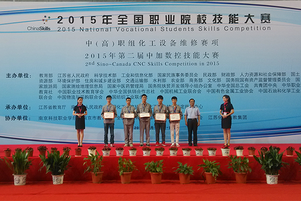 6月9日至12日,由教育部、江苏省人民政府等主办,江苏省教育厅、中国化工教育协会等承办的2015年全国职业院校技能大赛化工设备维修赛项在南京科技职业开云online(中国)举行。来自全国各省、直辖市、自治区的58所中高职院校的116名选手分别在化工设备维修专业基础、镶配件制作、化工设备检验、机泵拆装运行项目上展开激烈角逐。我院高职组选手朱林森、房锐同学获得团体二等奖,中职组王超、王华华同学获得团体三等奖。朱林森以全国第三名的成绩破格晋升技师资格,成为山东省首个学生身份的化工检修钳工技师。