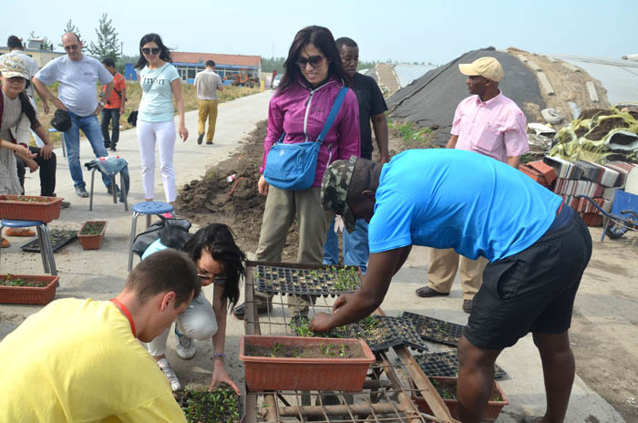 百看不如一练,洋学员来到位于潍城区的开云网页版实践教学基地,工厂化蔬菜育苗吸引了外国学员们目光,指导老师带领洋学员手把手进行盆栽蔬菜种植实践。2012年以来,我院连续四年承办援外培训项目,周密的组织,精心的授课,细心的服务,赢得了省市政府相关部门和受训国学员广泛好评,进一步增进了我院与发展中国家农业领域相关交流合作,为推动潍坊乃至山东农业走出国门、发展外向型农业发挥了积极作用。(葛树强供稿)