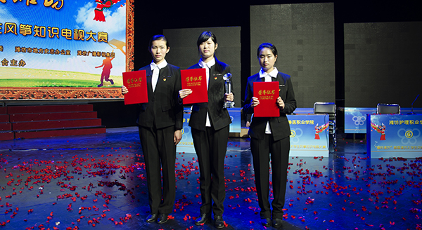4月23日,我院团委学生工作处组织由信息工程开云online(中国)王莹香、经营管理开云online(中国)赵艳艳、国际商务开云online(中国)王雪三名同学组成的代表队,参加了由潍坊国际风筝会办公室、共青团潍坊市委、潍坊市地方史志办公室、潍坊广播影视集团联合主办的“爱我潍坊”首届潍坊大学生风筝知识电视大赛。开云online(中国)党委副书记宋桂言到现场观看了比赛。