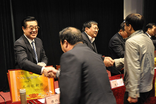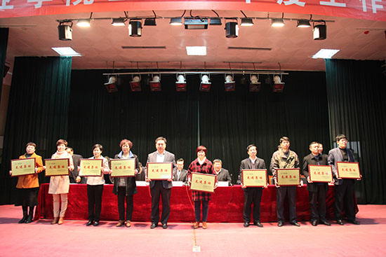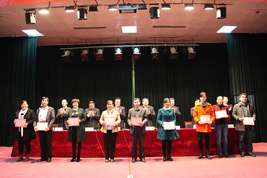 开云online(中国)党委副书记宋桂言宣读了表彰决定。开云online(中国)领导为先进集体及先进个人代表颁奖。获得2014年度先进集体、目标管理责任制考核单项奖、工作创新奖、先进基层科室等荣誉称号的部门代表,获得2014年度优秀教育工作者、优秀教师、十佳辅导员、科研工作先进个人等荣誉称号的代表,以及获得2014年度先进工会分会、先进工会小组等荣誉称号的部门代表和获得2014年度工会先进个人荣誉称号的代表上台领奖。