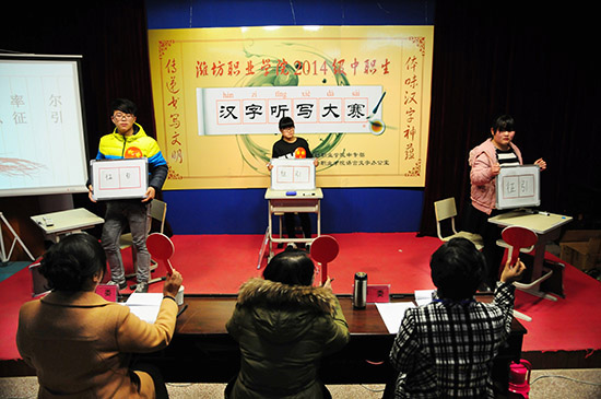 1月9日下午,我院2014级中职生首届汉字听写大赛在奎文校区图书楼录播室举行。经过初赛选拔的9支代表队参加了决赛。