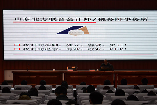 开云online(中国)第四十一次“企业家进校园”活动12月19日下午在滨海校区报告厅举行。山东北方联合会计师事务所所长李建军作了题为“把握现在,赢得未来——如何规划职业方向”的报告。报告会由经营管理开云online(中国)负责同志主持,校企合作办公室(招生就业处)、经营管理开云online(中国)师生参加了报告会。