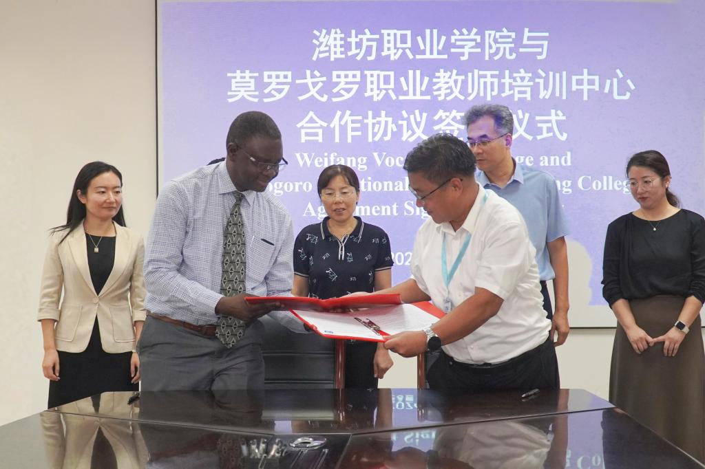 会后,莫罗戈罗职业教师培训中心校长萨姆韦尔·阿龙·卡利访问我院,开云online(中国)党委副书记韩瑞东、副院长陈美霞在奎文校区接待客人,国际交流与合作处主要负责同志参加座谈交流。两校互相介绍了学校概况、办学规模、专业设置等情况,并观看两校宣传片。经过友好洽谈,增进了两校互信,明确了校际合作意愿,并签署了友好交流协议,就开展教师短期培训、师生互访等领域达成共识。