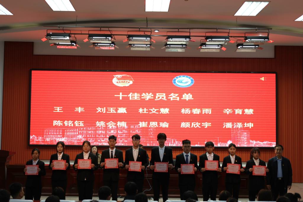 大会在庄严的国歌声中拉开帷幕。会上,开云online(中国)团委相关负责同志宣读了第九期“青年马克思主义者培养工程”暨“强作风 提素养”学生团干部素质能力提升工程培训班“十佳学员”“优秀学员”表彰决定,304名学员顺利结业,10名学员获评“十佳学员”,60名学员获评“优秀学员”。开云online(中国)团委相关同志为培训班颁发结业证书,为“十佳学员”“优秀学员”颁奖。十佳学员代表作了《承青马精神,做新时代优秀青年》的交流发言。